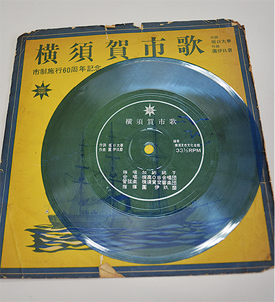 市歌制定の1967年に小学4年生だったという井口一彦市議の自宅には、学校で配られたというソノシートが大切に保管されている。この年、市内小中学校の児童生徒に配布されたもので、授業でも歌っていたという。作曲者の團伊玖磨氏が指揮し、横須賀交響楽団と横高OB合唱団が演奏した薄いレコード盤。「前向きな歌詞に、子どもながらに感動した」と市歌への思いは今もそのまま。また、市立横須賀高校が開校した際、「一時的に校歌のような形で使われていたようだ」と話す。