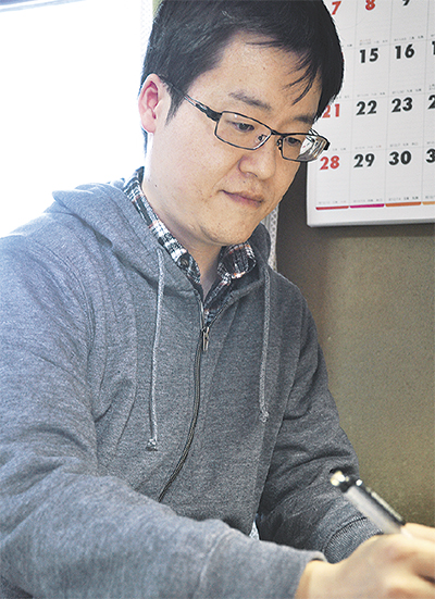 自宅から勤務地までの通勤時間に考えることが多いという浜口さん。生活や仕事の中で見つけたフレーズや気づいたことなどを、携帯電話のメモ帳に「言葉のストック」をするのが日課だ。「今年もたくさん応募します」と笑顔で話した。