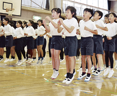 12月初め頃から練習を開始、ビデオ撮影で改善点の検証も行う。これに取り組む中で、体力向上という側面以外に「挨拶や礼儀、異学年での助け合いなど児童の心の成長に大きく繋がっている」と小菅教諭。