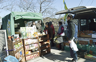 2回目の販売となった今月24日、回覧板で知った住民が三々五々集まり、陳列商品を確かめるようにして購入していった。会計時にスタッフとじゃんけんをして勝つと卵がもらえるサービスもあり、好評を得た。
