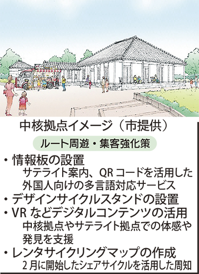 同事業のほかに、「横浜DeNAベイスターズ総合練習場」の設置を契機にした「追浜地区でのスポーツを核としたまちづくり」も選ばれており、2つを合わせた総事業費は7・9億円。国による支援は3年間で事業内容に合わせて各種交付金を受ける方向。市の担当者は「市長が掲げる再興プランの軸となる事業。周遊や集客を”稼ぐ力”に換えられるよう民間や地元商店街などと連携した仕掛けも考えていきたい」と話している。