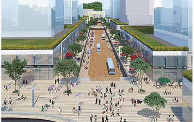 現在、同地区では6つの再開発準備組織が立ち上がっており、先ごろ地域住民らにより開発事業に対する「ガイドライン」も設けられた。景観への配慮を促す内容で、植栽や歩道の確保などを組み込んでいる。エリア構想図は再開発事業展開の中で、街のイメージを共有するためのもの。市担当者は「まちなか居住や来街者の増加など、相乗的な効果をもたらすよう実現に向けた整備手法を考えていきたい」と話している。