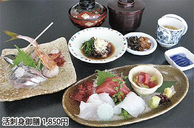 また、お得なランチメニューも特長の一つ。季節の魚が味わえる「活刺身御膳」や、地魚が豪華に盛られた「地魚丼」などが2千円以下で食べられるとあって人気が高い。