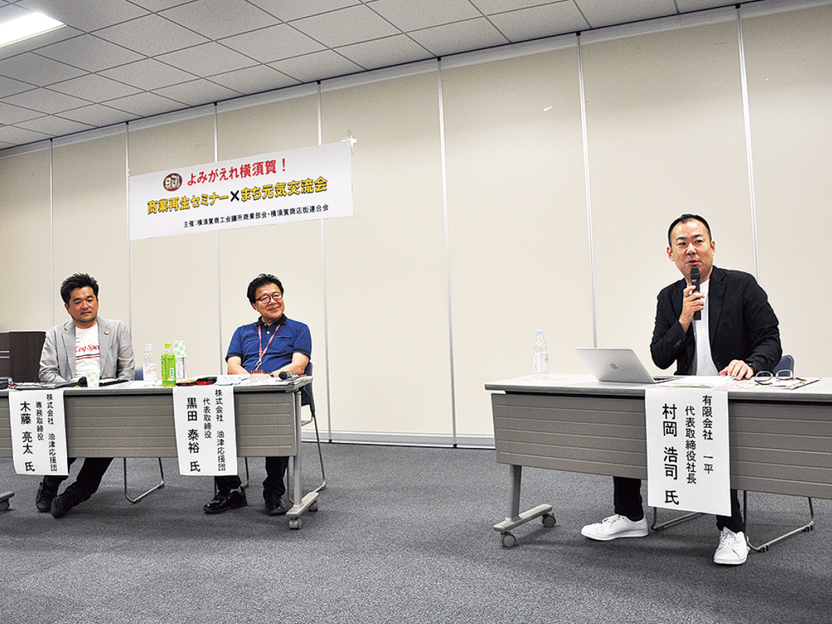 宮崎県日南市で「猫さえ歩かない」と言われたシャッター通りの油津商店街をわずか4年で再生させた立役者3人による商業再生セミナーが今月5日、横須賀商工会議所の主催で開かれた。地元経済人など約50人が熱心に耳を傾けた。