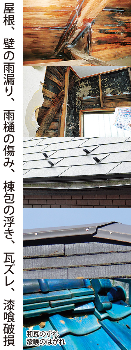 大阪北部地震では1万棟以上で被害があり、けが人も続出した。これまで発生した低気圧・台風の大雨や強風・雪・地震等で左写真のような傷みがある場合、被害が拡大することもあるので家全体の点検が必要だ。サンテック(株)は赤外線サーモカメラ・壁やブロック下地センサー診断が無料。家の心配な箇所や他社で止まらない雨漏り修理、屋根工事、塗装、他社との比較見積も大歓迎という担当の山下さんに聞いた。