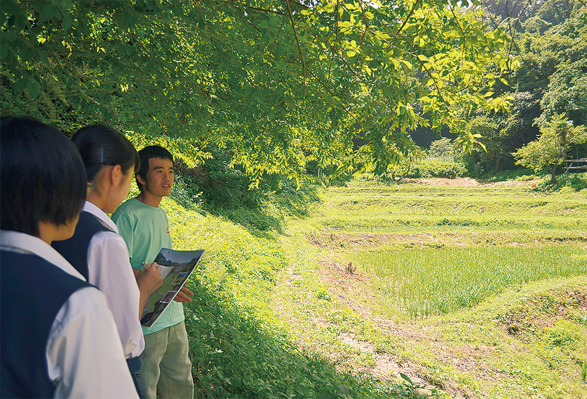 天白さんのNPO法人では、生態系を守る実践の場として、谷戸の休耕田やカヤ場などを所有者から借り受け、復田(復元)に取り組んでいる。現在、横須賀市に11カ所、葉山町に2カ所あり、自然生態系に負荷のかけない農法で、土地本来の植生や生物を呼び戻すことをめざしている。子どもたちを対象にした体験プログラムやエコツアーも実施。生物多様性を守る担い手の育成にも力を入れている。