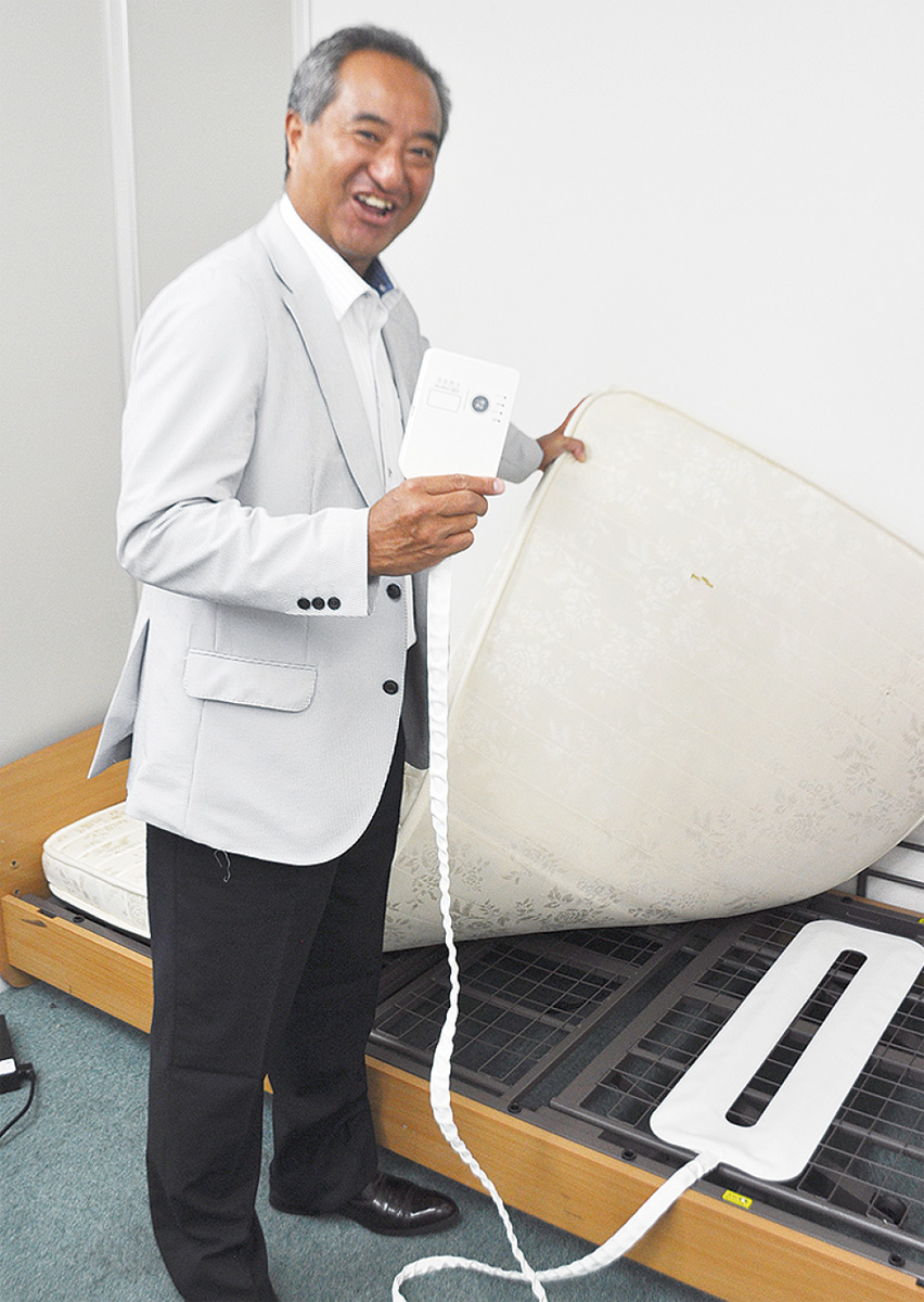 高性能センサーは、体に触れない布団の下からでも生体データを即時に計測できる。施設職員が入居者を見回る負担を軽減させ、現場からは「異常があればすぐに知らせてくれるので、安心して入居者と向き合える」などと高い評価を受ける。現在、全国約500施設で導入され、その数を増やしている。