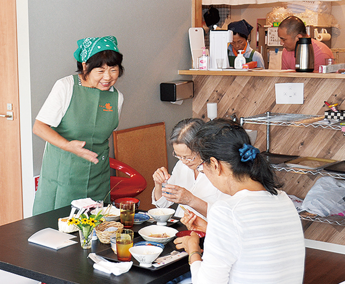 話す・食べることに特化した介護サービス「リハビリデイセンター悠ハッピーマウス」に併設。同所の利用者家族らの待合室と、定食等を提供する飲食・コミュニティスペースとしても運営する。