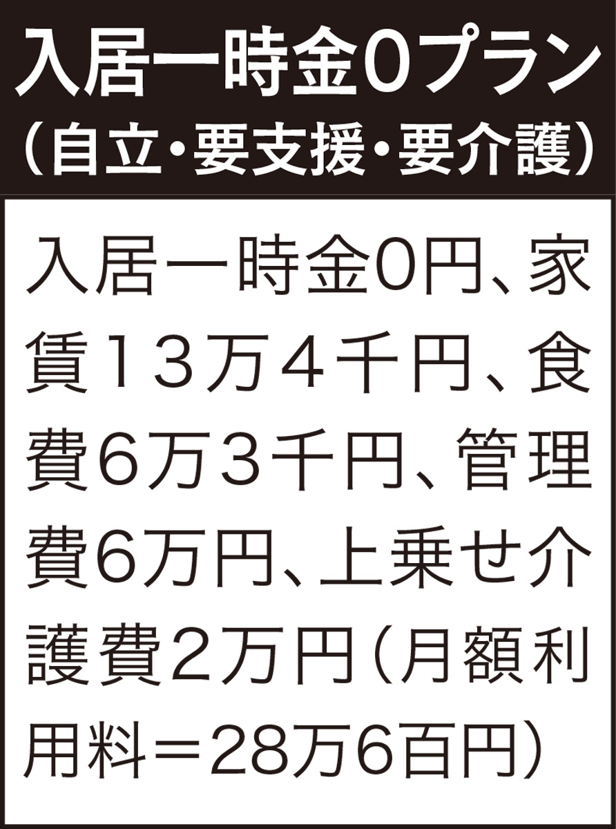 入居時の初期費用をゼロとした独自のプランも用意。月額利用料(28万600円)のみで他のプランと同様のサービスが受けられる。