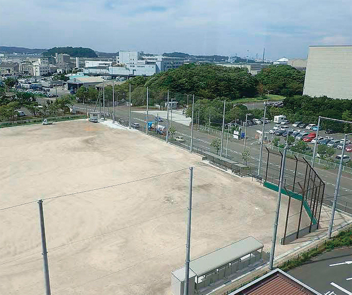 新たなグラウンドが設けられたのは、リサイクルプラザアイクル横の市有地。一昨年、横浜DeNAベイスターズが総合練習場など2軍拠点を横須賀スタジアム周辺に集約することが決まり、これまで市民が利用していた追浜公園第2・第3球場の代替地として、同地と佐原のリーフスタジアム横に整備されることになった。所在地は浦郷町だが、貝塚通りや都市緑地など近隣に「夏島」のイメージが強い場所のため、「夏島グラウンド」の名称となった。
