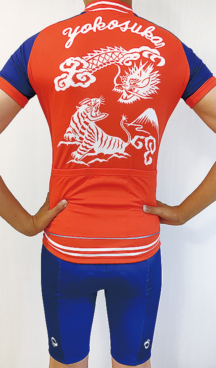 市内4カ所の観光名所を自転車で巡りながら楽しむスタンプラリーの景品として、スカジャンサイクルジャージが誕生した。