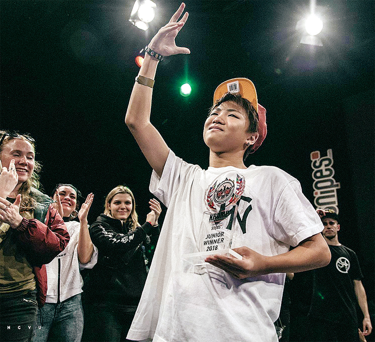 世界各国から予選で選ばれた8人でトーナメント戦を行い、小柄な体型ながらも力強くリズム感があり、安定感のあるパフォーマンスを魅せつけ、会場を沸かせた。能城さんは「嬉しいけれど、力を出し切れなかった場面もあった。これからも楽しく挑戦していきたい」と話した。