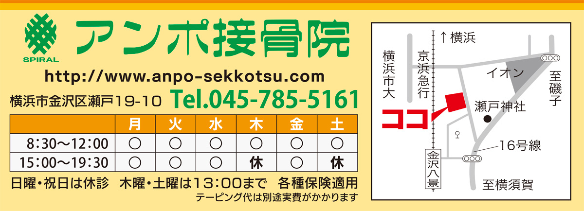 安保院長 はい。協会本部は大阪にあり、柔道整復師、鍼灸師である田中信孝先生が考案して設立し、現在全国に約550名の会員(医師、柔道整復師、鍼灸師)がおります。ただ、皆さんのお住まいの近くにあるかどうかは、スパイラルテーピング協会にお気軽に問い合わせてみて下さい。