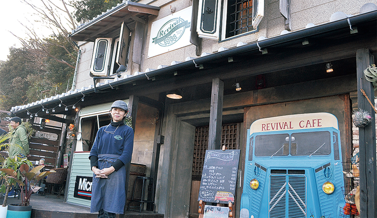 三浦市初声町和田、国道134号線沿いに1軒の蔵づくりのカフェが建つ。オーナーの三崎由湖(ゆみ)さん(都内在住)は解体寸前だった築90年以上の建屋を購入・改修し、再生を意味する「リバイバルカフェ」と名づけた。