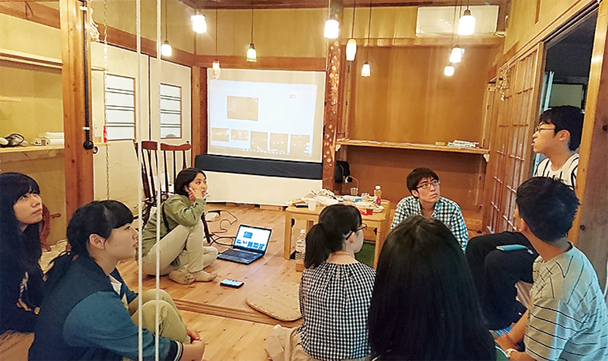 昨年3月に完成して以降、市内に住む高校生や大学生らが集まる交流拠点となっている。会議室のように利用されているほか、夏には近隣で採った竹を使い流しそうめんを行ったり、12月には庭にレンガでピザ釜をつくったり、イベントの会場としても機能している。