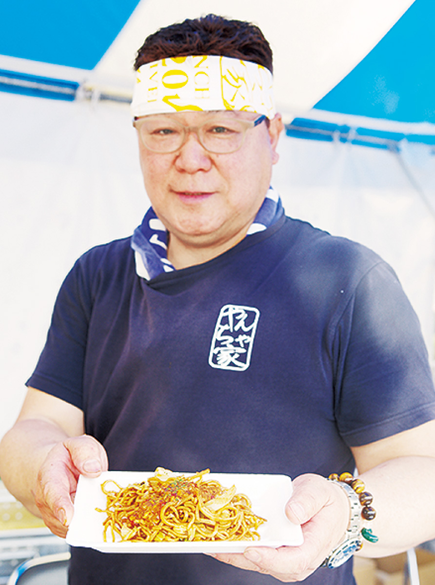今回は20周年の新企画として「カレー焼きそば部門」を新設。カレーで有名な神田と下北沢からの挑戦店を迎え撃つ形で、横須賀からは「やんちゃ屋」がキーマカレーをトッピングした焼きそば=右写真=で人気投票の勝負に臨んだが惜しくも1位を逃した。キーマカレー焼きそばは若松町の同店で今月末から提供予定(税別880円、1ドリンク、お通し代別途)。