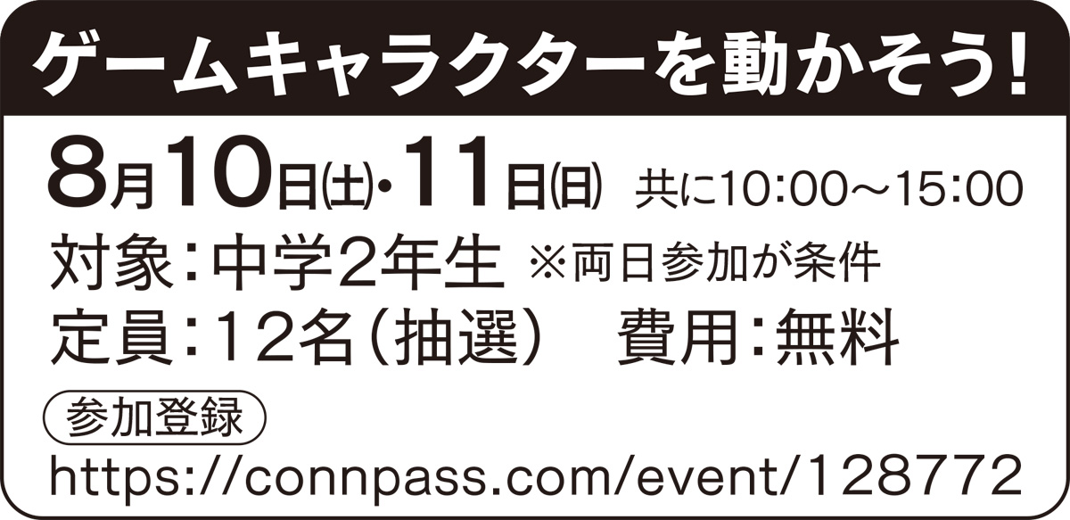未来のCG(コンピューターグラフィックス)クリエイターを育成する入門講座が、横須賀市産業振興財団の主催で開かれています。初心者でも使いこなすことができるアプリケーションを使って3DCGの制作やゲームキャラクターに挑戦する内容です。今月6・7日には、中学1年生を対象に動画配信をアニメキャラクターが行う「Vチューバー」技術を学ぶレッスンが行われ、パソコン上に自分が描いたイラストを動かす方法を学びました=写真。来月には中学2年生に向けた講座もあり、参加者を募集しています。