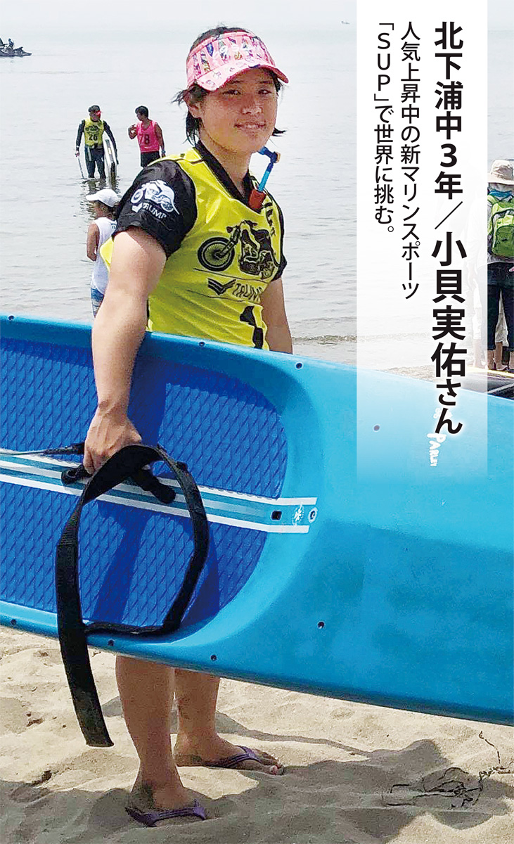 サーフボードの上に立ち、パドルを漕いで前進する「SUP」(スタンド・アップ・パドルボード)競技の若き新鋭だ。国内の女子選手では五指に入る実力。用具メーカーのサポートも受けながら全国の大会を転戦している。昨年は中国・海南島で開かれた世界選手権U-18クラスに初出場。14人中7位の結果には満足していないが、「世界視野で自分を捉える貴重な経験」と控え目な口調で話した。