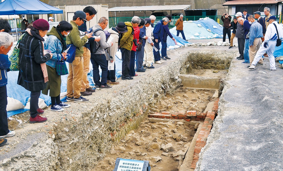 2020年で開所から300年が経過する浦賀奉行所の跡地で今月9日、横須賀市教育員会が行っている発掘調査の現地説明会が開かれた。23日には120周年を迎える浦賀ドックと奉行所をテーマにしたシンポジウムを開催するなど、市は浦賀にある歴史資産の価値の再確認に取り組んでいる。