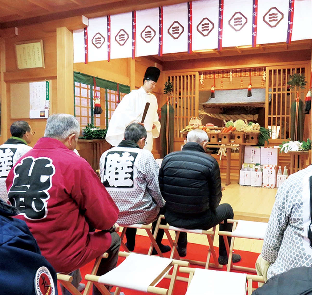 当日は年が変わる午前0時から午後3時まで、甘酒や豚汁が振る舞われるほか、神札、お守り、おみくじ、破魔矢なども用意されている。午前9時からは新年神事=写真=、10時からは各種の祈祷を実施する。甘酒のサービスは3日(金)まで行われる(2日、3日は午前10時から午後3時)。