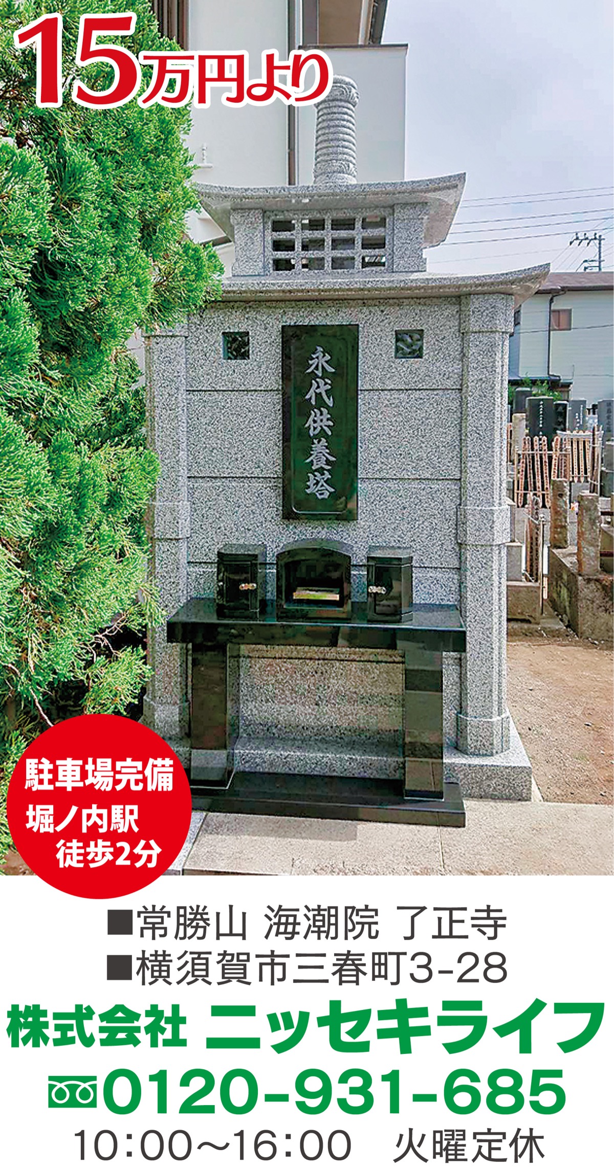 京急・堀ノ内駅から歩いて2分、1661年開創の歴史を持つ「了正寺墓苑」ではこのほど、永代供養塔を新設した。