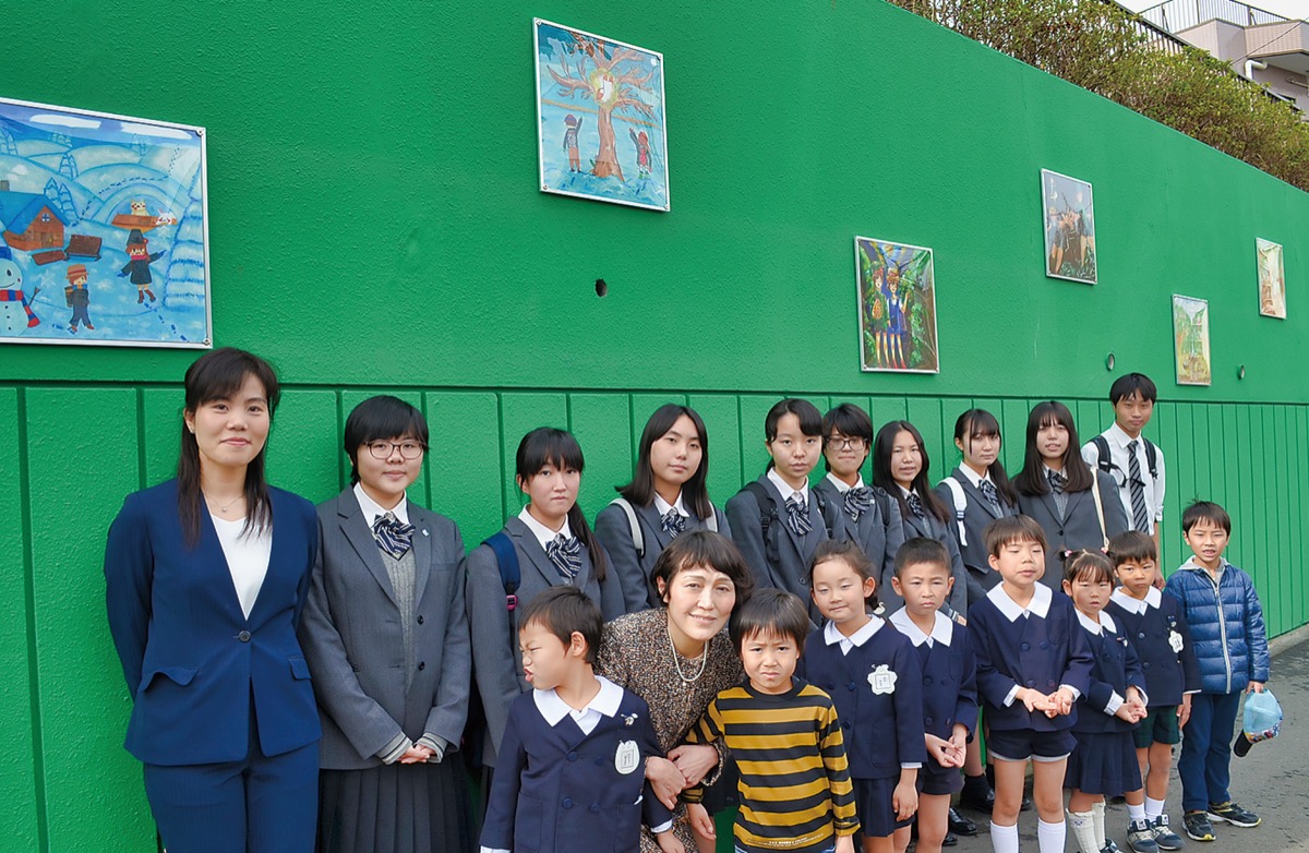 同校3年で美術部部長の小菅貫太さんは「ひとつひとつの絵に説明があるわけではないので、子どもたちには想像力を膨らませてみてほしい」と話した。また、絵のどこかに”隠れ音符”があり、それを見つけるのも楽しみの一つだという。同園の高木麻里園長は、「子どもが成長するにつれ、絵の見方も変わってくる。周辺の小学生の通学路にもなっているので、卒園後も見てほしい」と話した。