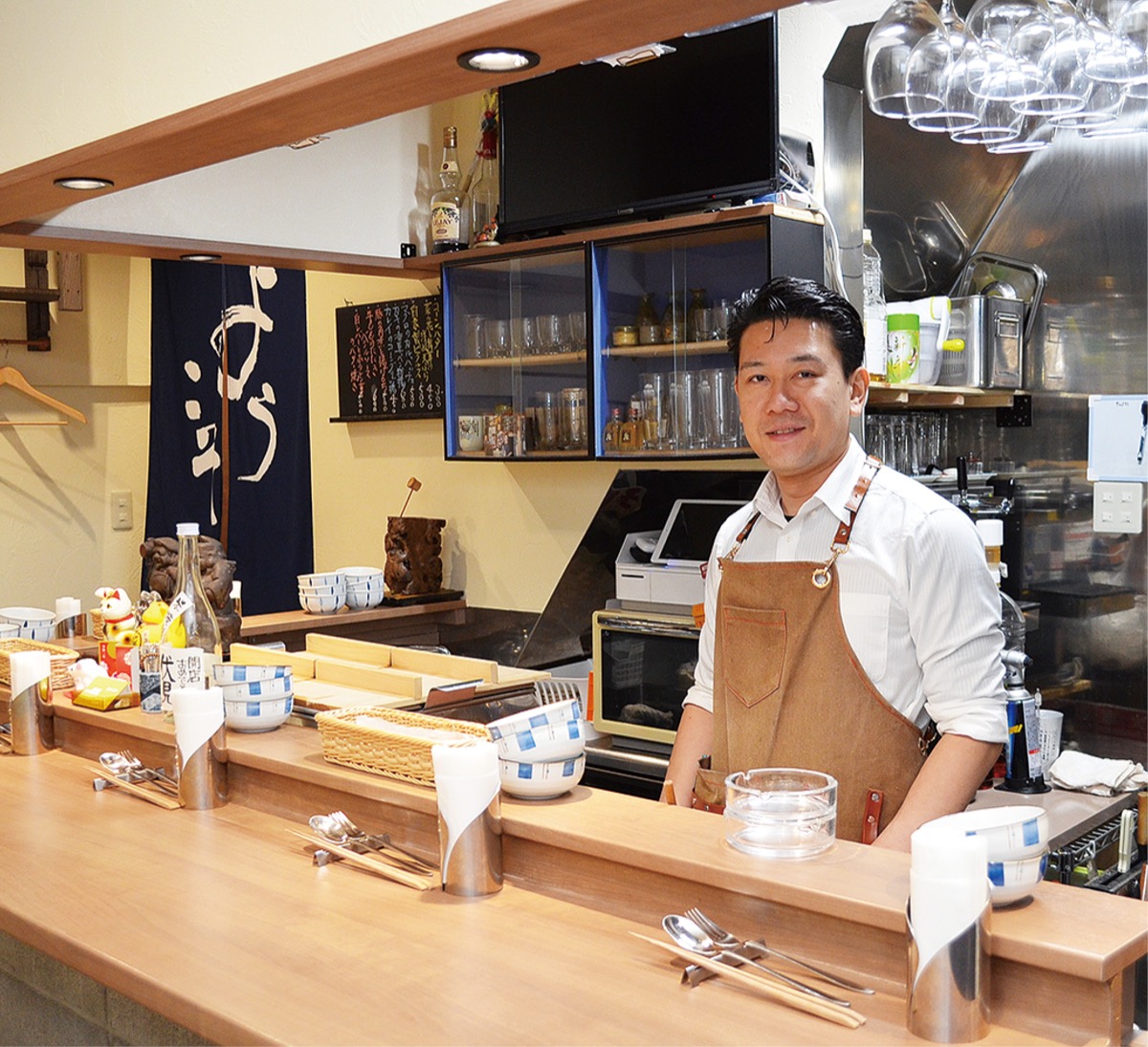 東逸見町に昨年9月、認定第1号店としてオープンした「居酒屋 伏見」。店主の田代貢介さんは、元フレンチシェフ。「生まれ育った地元を元気にしたい」と出店を決めた。カウンタースタイルの居酒屋ながらフレンチメニューも味わえる。今後は学生と一緒にイベントなども行っていくという。