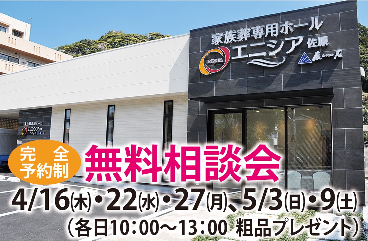 「無料相談会」を4月16日(木)・22日(水)・27日(月)、5月3日(日)・9日(土)の友引きの日に実施。時間は各日午前10時から午後1時。完全予約制で個別対応してくれる。