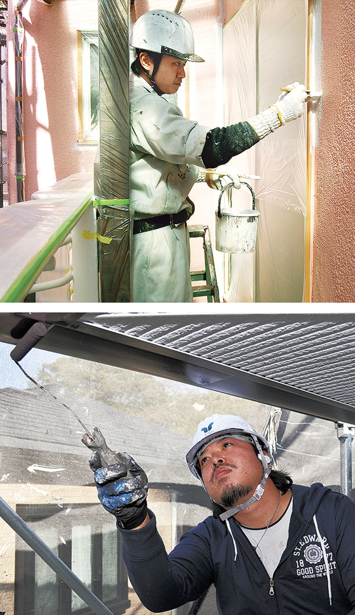 施工の注文はほぼ市内から。馬堀海岸や野比など、潮風の影響を受けやすいエリアでは塩害に強い塗料を、湿気の多い山間部には苔に強いものを用意。地元の特性をよく知る同社だからこその提案をしてくれるもの安心材料だ。