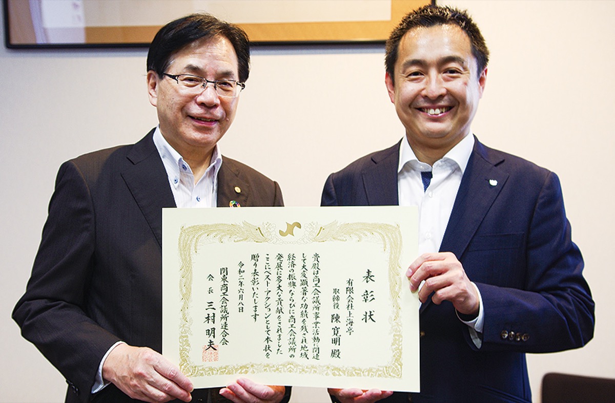 横須賀商工会議所などで構成される「関東商工会議所連合会」が地域経済の発展や会議所事業へ貢献した会員事業者を対象に毎年行っている「ベスト・アクション表彰」。今年度市内からは陳寛明さんが選ばれた。