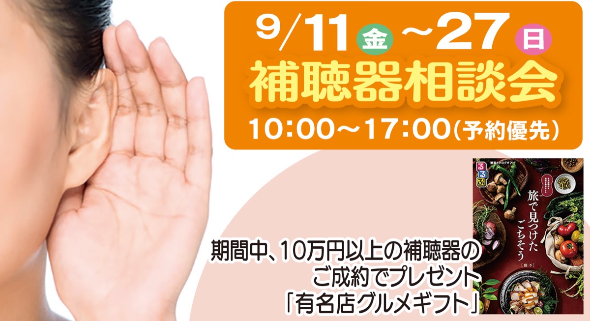 3店では9月11日(金)から27日(日)、恒例の「補聴器相談会」を実施。「購入を考えている」「生活習慣に合わせて買い換えたい」「不具合が気になる」という人までニーズや用途に合わせた補聴器をじっくり選べるほか、試聴や貸出も可能だ。