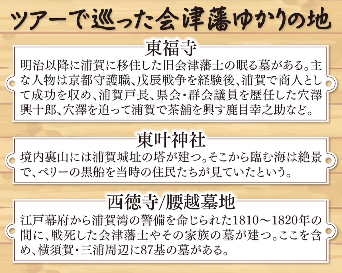 こうした歴史的背景を伝える市民団体「三浦半島会津藩士顕彰会」と「湘南海援隊」は先月27日、鶴ヶ城(会津若松城)が開城した9月22日に合わせ、会津藩士ゆかりの地を巡る散策ツアーを横須賀東エリアで開催した。会津若松市出身の本紙記者も同行し、横須賀と会津の深いつながりを探った。