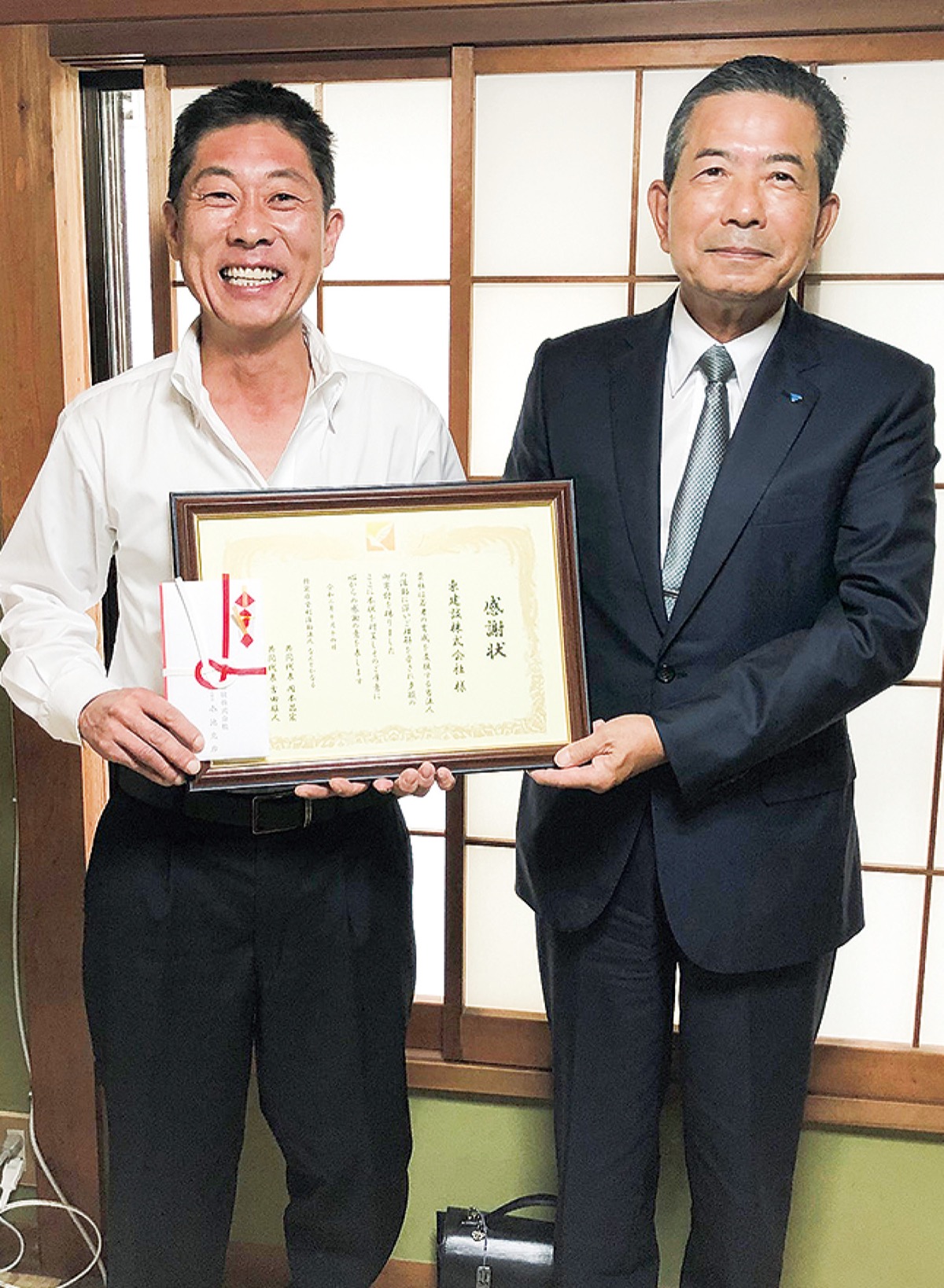 地元企業の東建設(株)(池上3の2の6)は今月14日、同社の創立70周年記念事業として、家族と暮らせない若者のための自立支援施設を運営するNPO法人「なんとかなる」に現金20万円を寄付した。