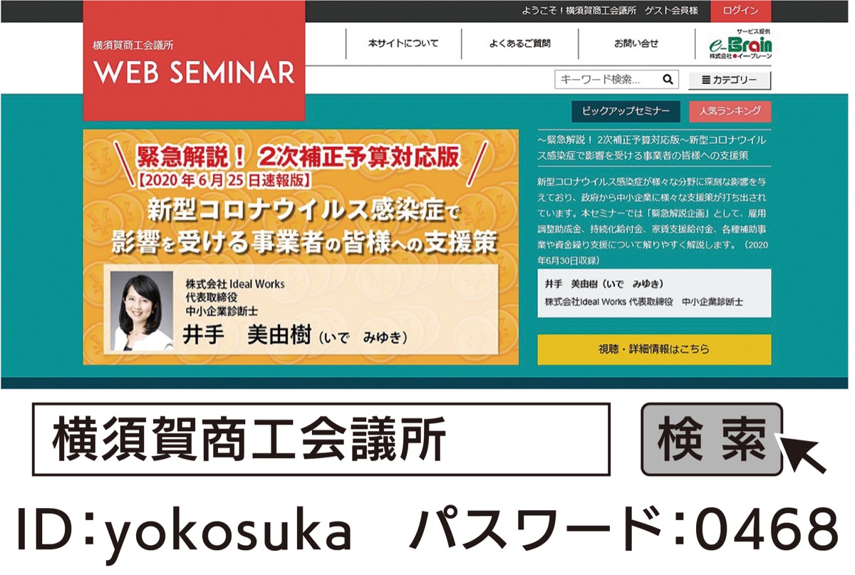 横須賀商工会議所のホームページ(【URL】http://yokosukacci.com/)で公開=写真。上記のIDとパスワードでログイン。詳細は横須賀商工会議所 産業・地域活性課【電話】046・823・0402