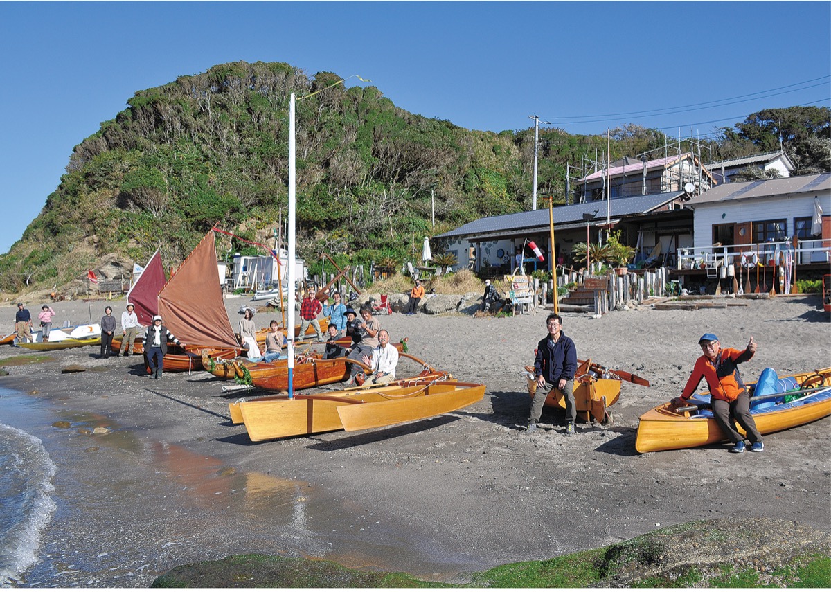 全国の愛好家が持ち寄ったボートは全部で13艇。カヌーにマストを取り付けたセーリングカヌーにスタンドアップパドル、一本の丸太をくり抜き、1年半かけて削り上げたアウトリガーカヌーが浜辺に並んだ。自慢のセーリングディンギーを軽トラックの荷台に載せて新潟県からはるばる駆けつけた男性は、「市販のヨットは競技志向ばかりで、自分が乗りたい艇がない。設計図を頼りに木を製材するなどして2年がかりで完成させた」と笑顔を見せ、帆を広げて海に繰り出した。
