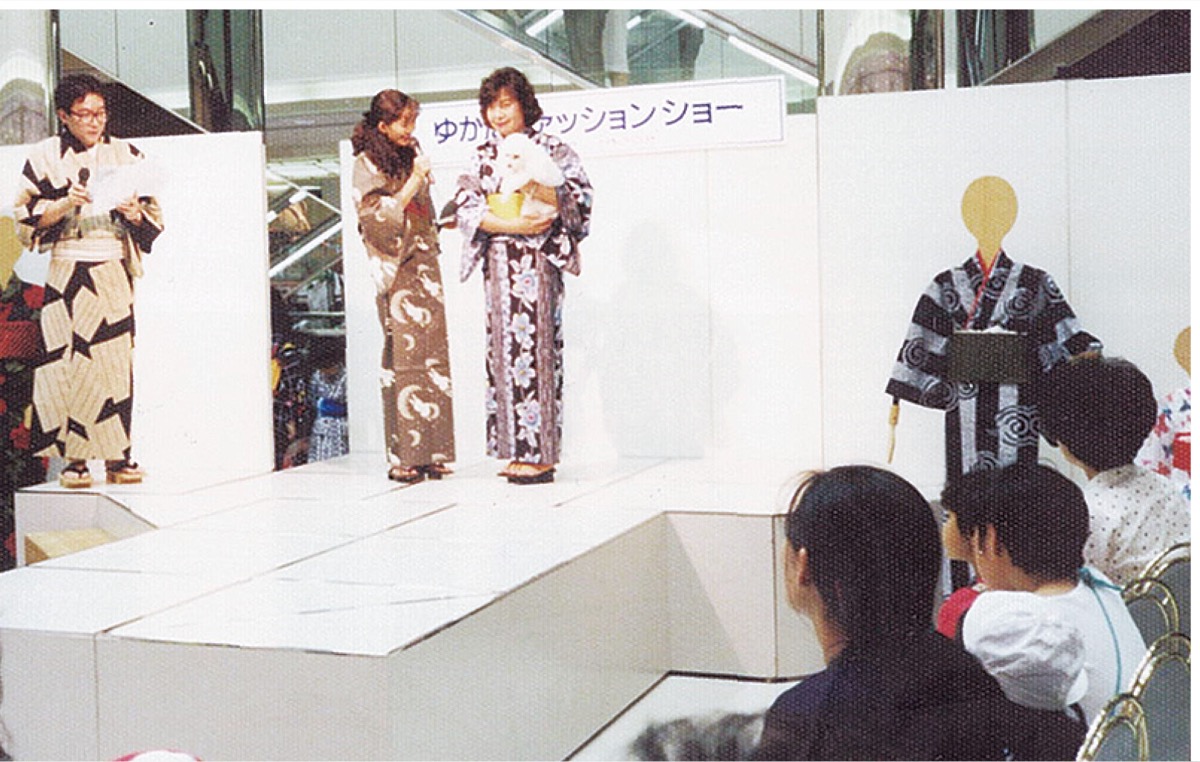 さいか屋で開かれた「ゆかたファッションショー」に出演したことが強く印象として残っています。ステージの様子を写した写真の裏には「1990年6月24日」の記録。30年も前の出来事ですが、アットホームな会場の雰囲気を今も鮮明に覚えています。