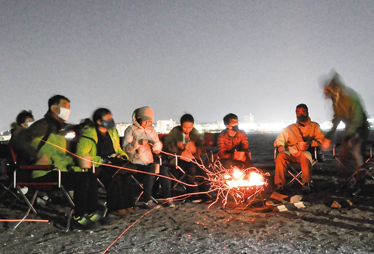 同社では、2月に「ナイトツアー」「サンライズツアー」の2本を試験実施した。前者は、トンネルや弾薬庫などライトアップした猿島要塞跡をガイドの案内でめぐる企画。静寂の異空間をつくりだし、幻想的な雰囲気を味わってもらう。島内を散策した後はビーチに用意した焚火を囲んでカフェタイム。人気アウトドアメーカー、スノーピークのギアを使用するなど細部にもこだわる。