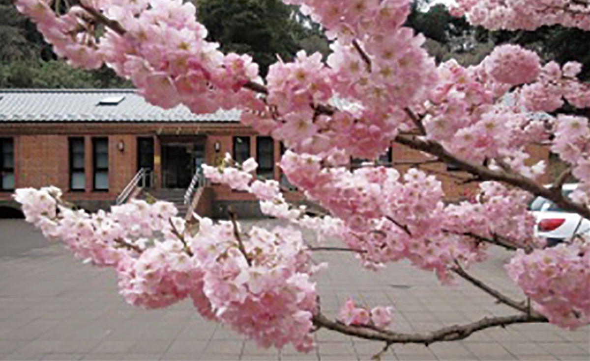 鴨居の観音崎公園ですでに葉桜になった河津桜に続き、今度は「春めき桜」が同園パークセンター前で見ごろ=写真。ピンク色の花が来園者を楽しませている。