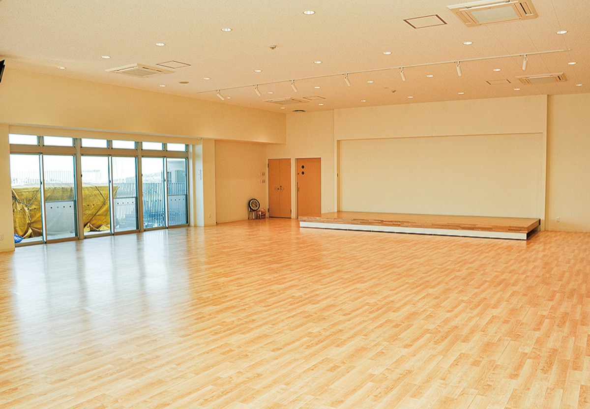2階建てとなった園舎はこれまでの約1千平方メートルから約2千平方メートルと2倍の大きさにスケールアップ。壁面収納可動式ステージを備えたホールに、太陽の光が降り注ぐ多目的バルコニーが存在感を放つ。夏場のシーズンはこの場所にプールを設置し、子どもたちが水遊びに興じるという。