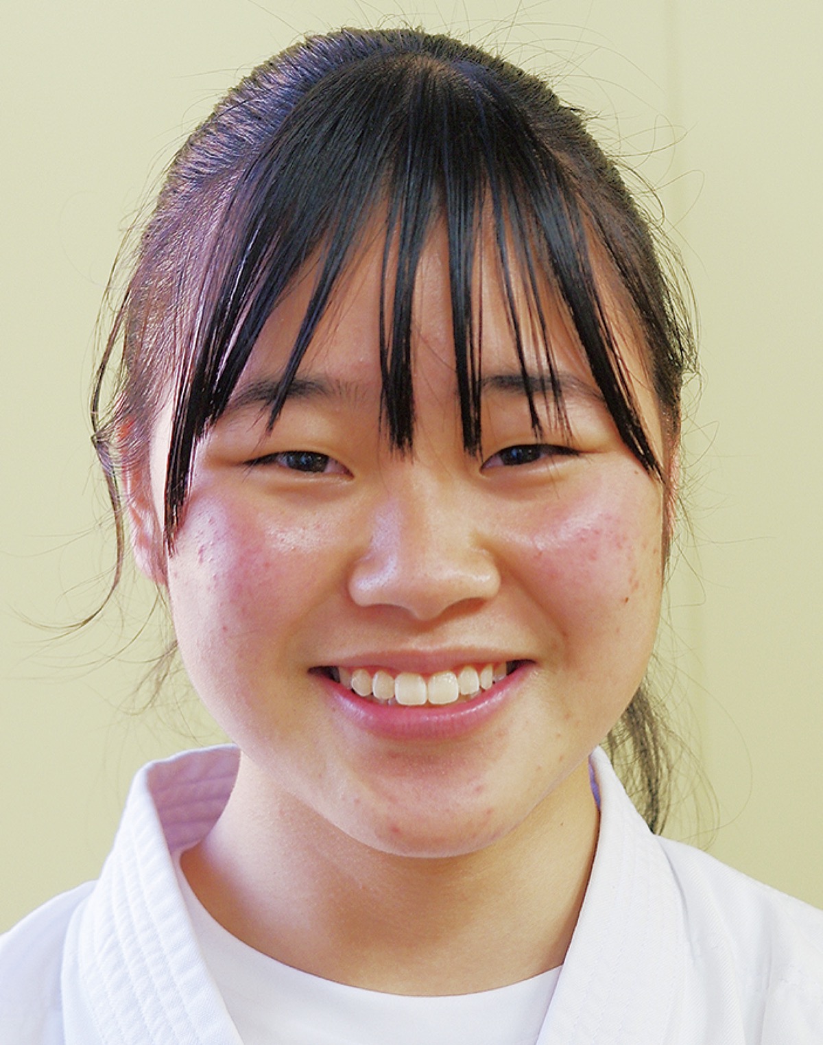 ○…コロナ禍に見舞われた今年度は思うように稽古が出来ず、開催に漕ぎつけた大会でも自身が納得のいく試合が出来ていない中、やっと掴み取った日本一のトロフィー。「『絶対に勝つぞ』という強い自信を持ち続けて試合に挑めた。決勝では最近負け続けていたライバルに競り勝ち、素直に嬉しい」。重いローキックで相手を崩し、ハイキックで決めるのが得意な勝ちパターン。まだ表情に幼さは残るが、にわかに浮かれず前を見据える眼光からはすでに武道家としてのオーラが感じられる。