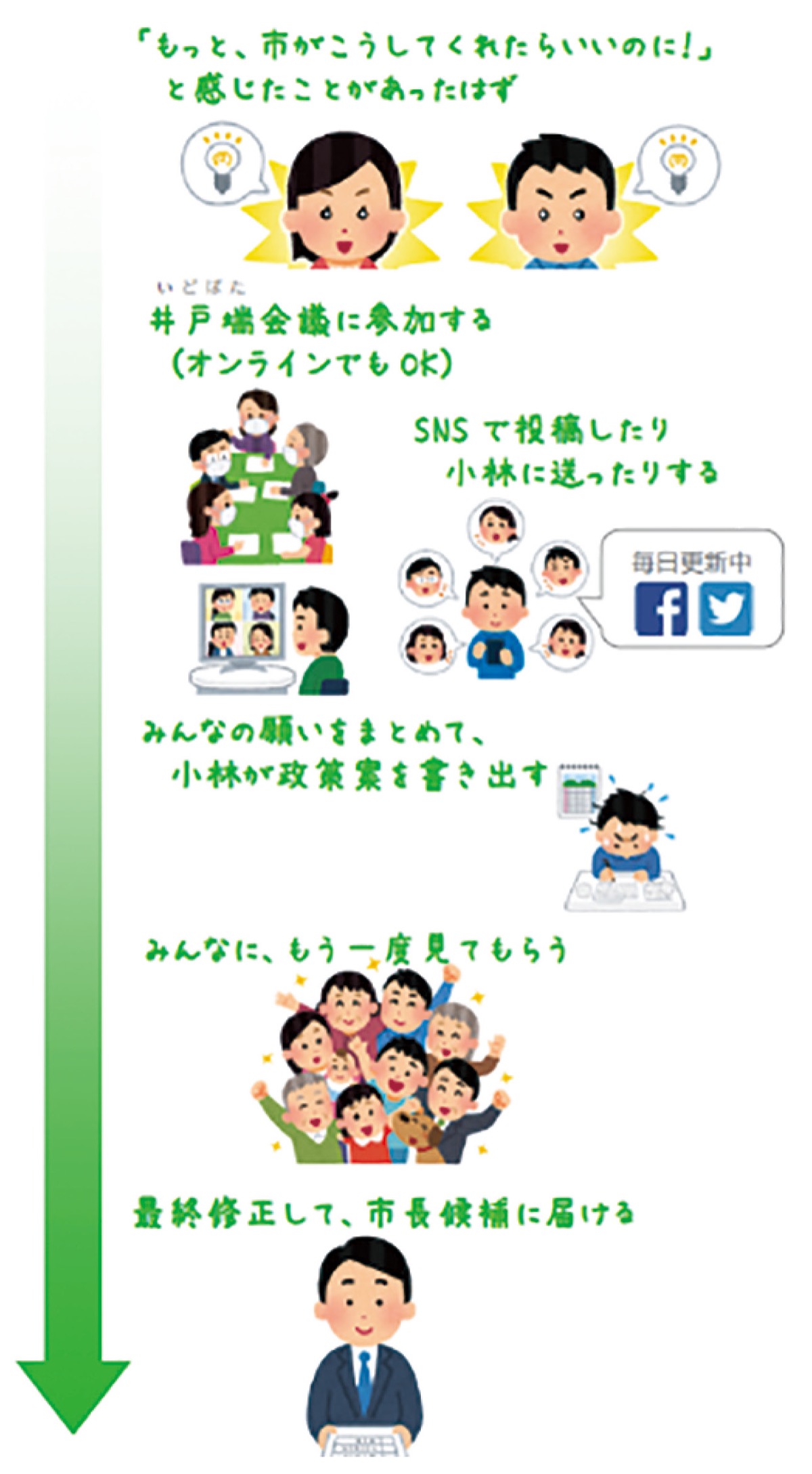 市民ニーズを実現するための大事な選挙です。未来の市長に、みんなの願いを!