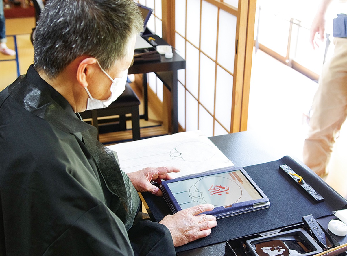 次に「生きた歴史体験プログラム」としてタブレット端末も取り入れた写経と小型仏像作成体験ができるプログラムを開設。阿弥陀経や自身の願いに応じた梵字を筆で書き下ろした画像をタブレット端末に画像として取り込み、奉納するプログラム。秋谷在住の仏師・梶谷叡正さんが直接指導を行う彫像、彩色修行体験も用意した。いずれも7月1日(木)開始で有料(拝観料含む)、現在予約を受付けている。