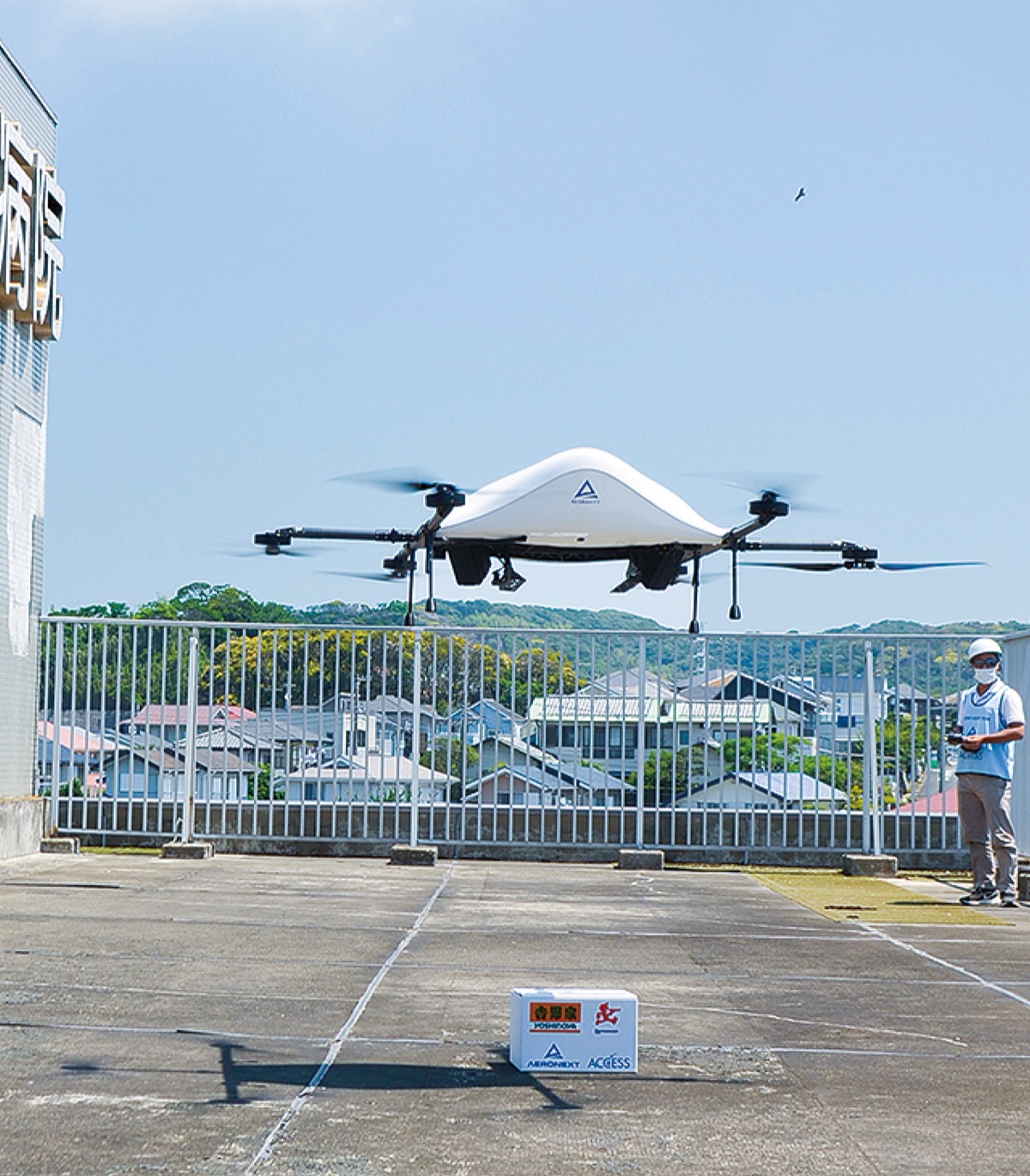 IoTを活用した物流技術で、横須賀が抱える社会課題を解決する「ヨコスカ×スマートモビリティ・チャレンジ」の一環。ドローン開発を行う(株)エアロネクストやデリバリーサービス大手の(株)出前館、牛丼チェーンを展開する(株)吉野家などが連携したほか、市が河川や建物の所有者に飛行の許可取りなど調整を図ったうえで実施された。