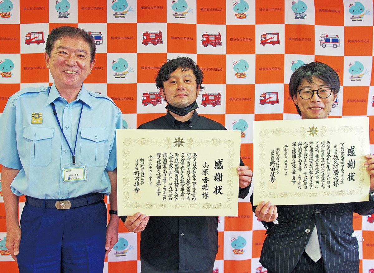 横須賀市消防局は先月28日、傷病者の救命に助力した3人に感謝状を贈った。