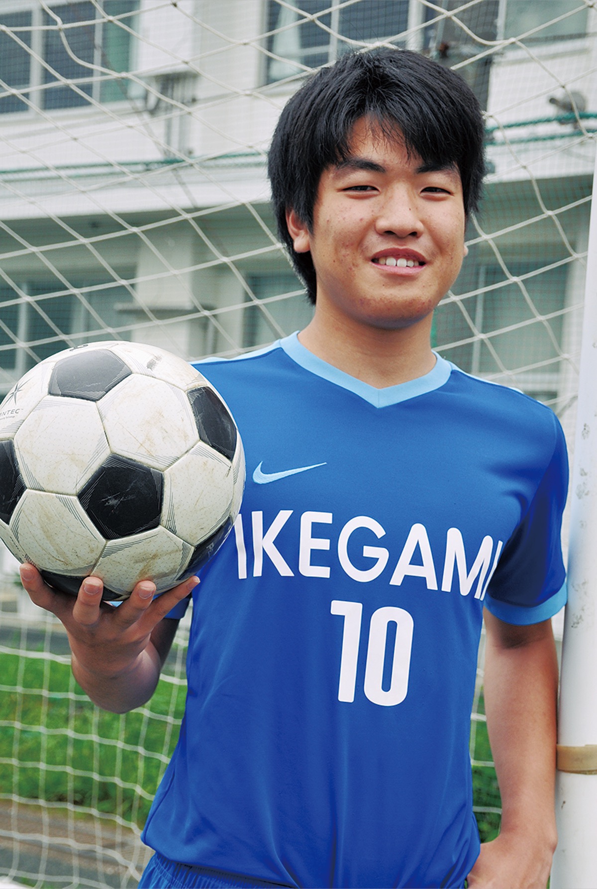 187cmの体格に、ポジションはセンターバック。「グラウンドでの集中力とゴールを意識した正確なパス」が持ち味だ。中2の時に、クラブチームのユース組織から誘いがあったが、「この仲間で続けたい」と部活動に専念する選択をした。地道に練習を重ね、縁や出会いを大切にする謙虚さが、プレイヤーとしての成長を下支えしている。目標とするのはサガン鳥栖のDF・エドゥアルド選手。「見ている人をワクワクさせるプレーがしたい」。言葉に闘志をみなぎらせた。