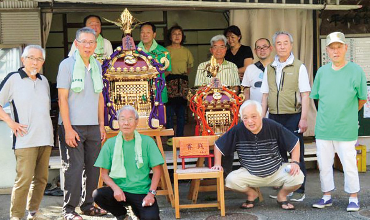 追浜2丁目平和会は今月11日、新たな神輿のお披露目会を開いた=写真。これまで担がれていた神輿・子ども神輿は、60年ほど前に浅草の神輿専門店から購入したもの。飾りの部品が無くなってしまったり、年を重ねて塗装の剥げや傷みが目立つようになっていた。そこで、昨年から寄付を募り修理した。