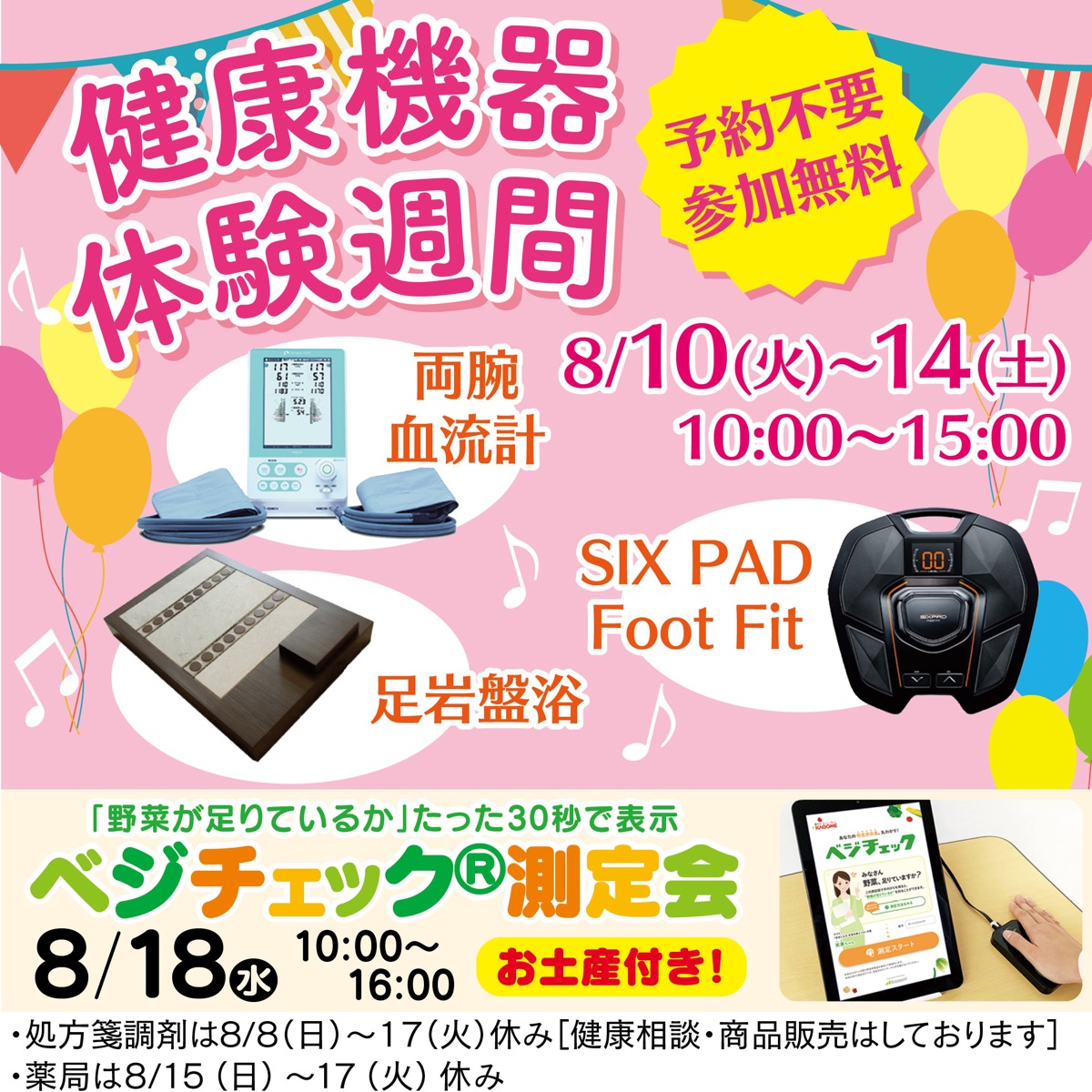 久里浜の「ひなた薬局」では今夏、多種多彩な健康機器を体験できるイベントを開催します。