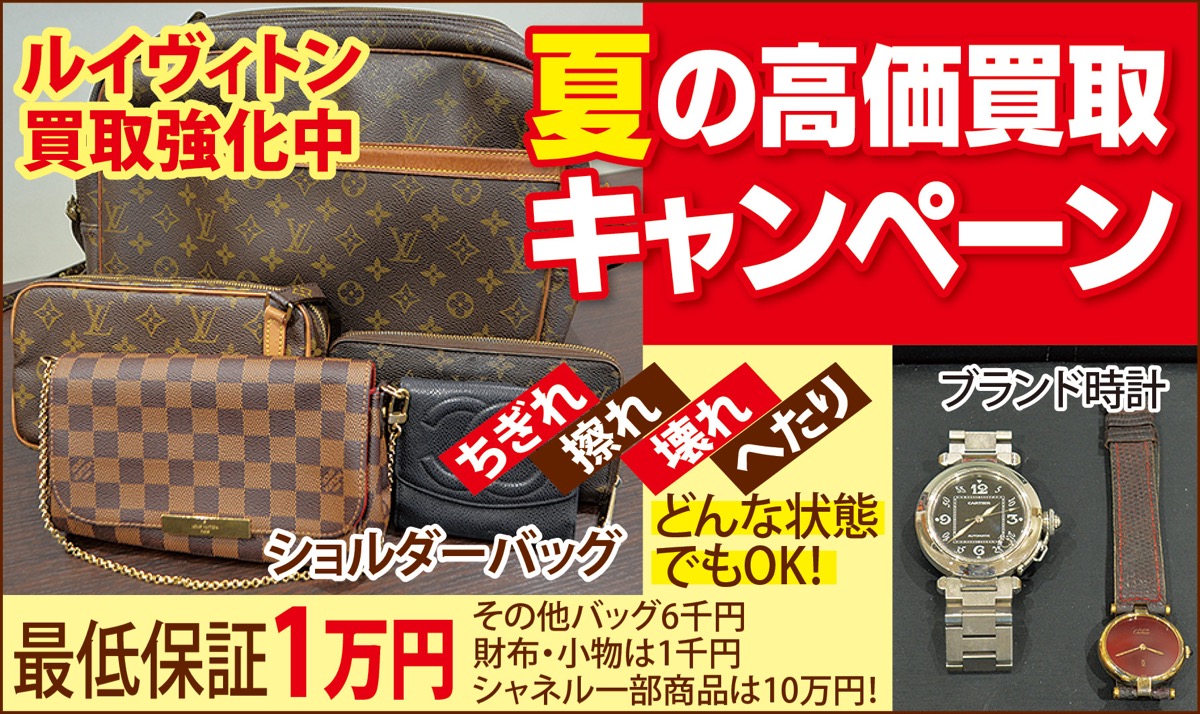 「バブル時代に買ったブランド品。もう使わないかな…」。夏の高価気取キャンペーン実施中の買取専門店「売るナビ」へ持ち込めば、夏休みを満喫するためのボーナスが手に入るかもしれない。ルイヴィトンショルダーバッグは今だけ最低保証1万円。シャネル一部商品は10万円。ブランド時計も強化買取中。電話1本で出張買取も可能、無料査定、即現金化。高値推移の金や宝石等買取品目も豊富だ。