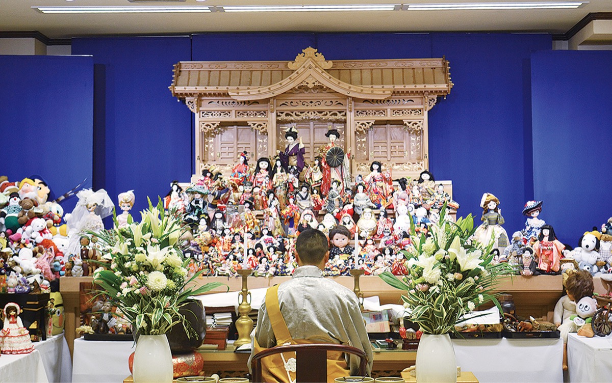 地元葬儀社の辰若では9月2日(木)、思い出の詰まった人形などに別れを告げる「人形供養会」を開く=写真。今回で14回目を数える恒例企画。僧侶が読経をあげ、焼香をすることで気持ちに区切りをつける。