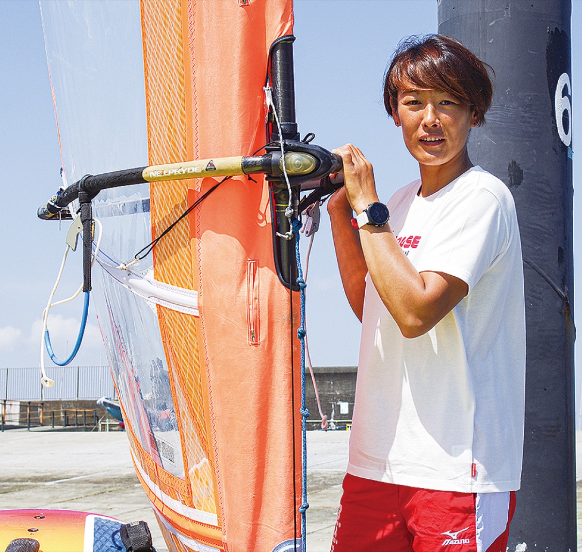 相模湾江の島沖をレース海面に開かれた東京五輪「ウインドサーフィンRS:X級」に出場した田浦町在住の須長由季選手=写真=は、総合12位の成績で上位10選手のみで競われるメダルレース(決勝)進出を果たせなかった。
